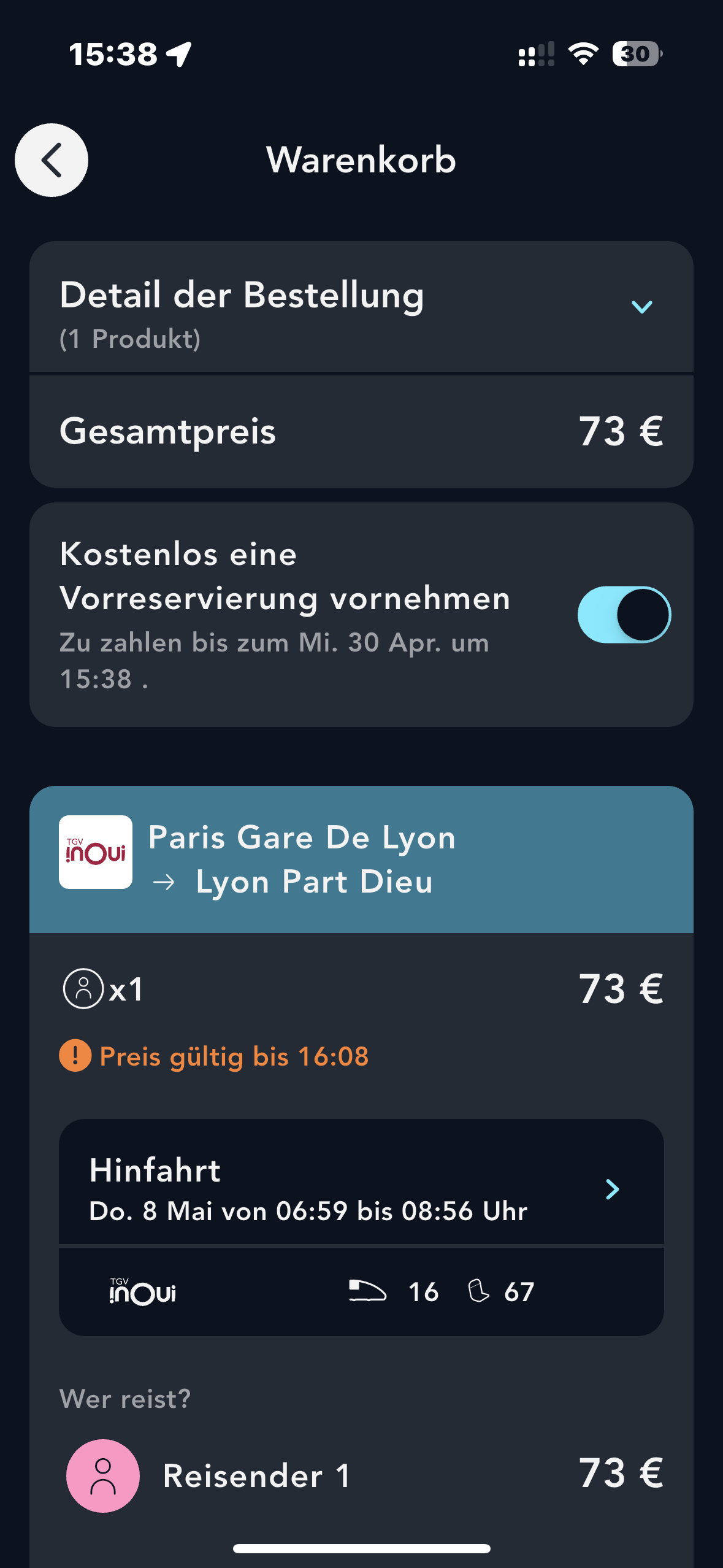 Überprüfen Sie die Details Ihrer Bestellung und klicken Sie auf „Ihre Vorreservierung bestätigen“.