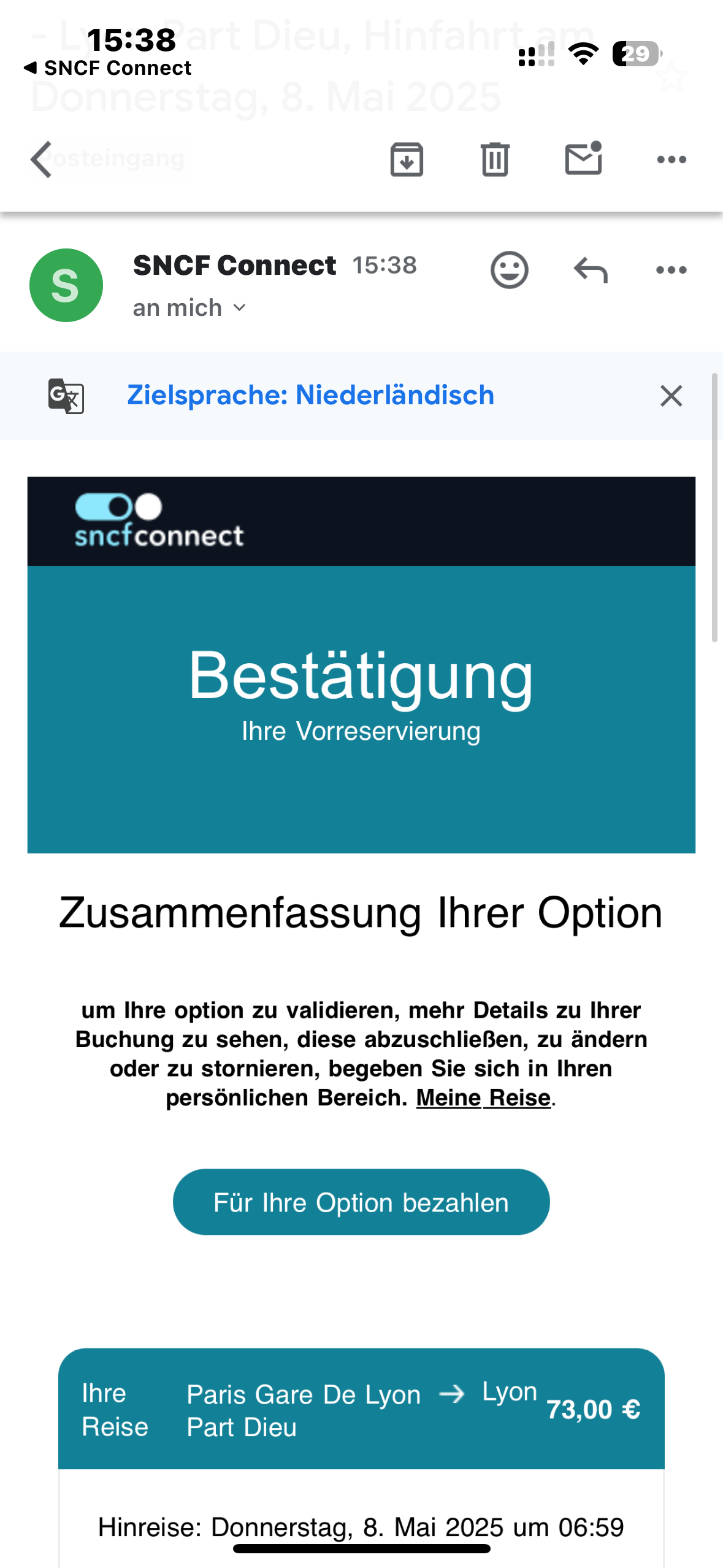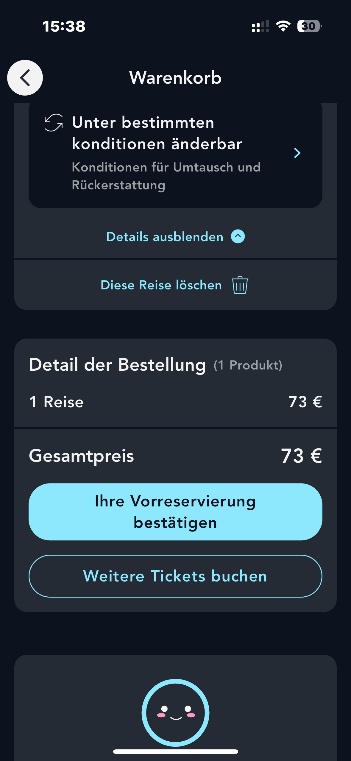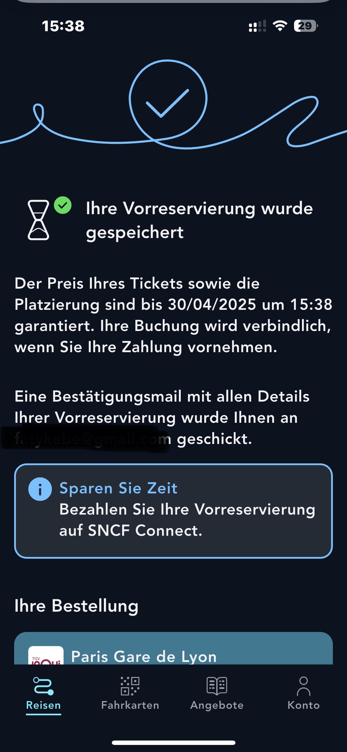 Sobald Ihre Buchung angezeigt wird