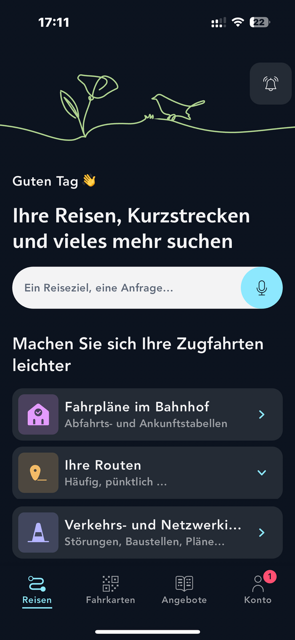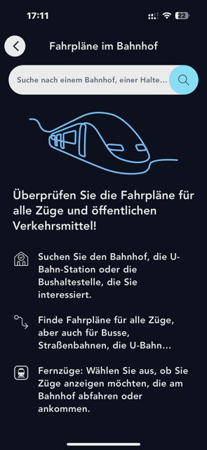 Tippen Sie auf der Startseite der App auf "Fahrpläne im Bahnhof"