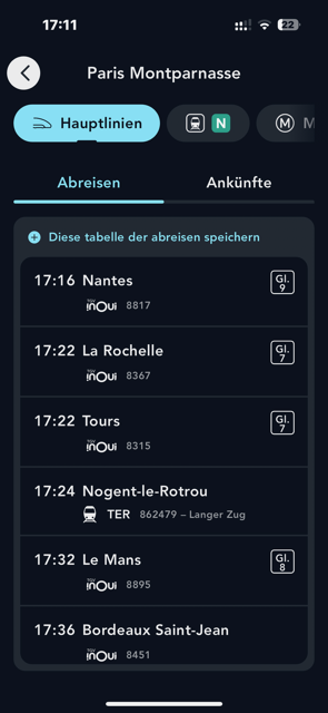 Wie kann ich einen Bahnhof in der App SNCF Connect speichern?