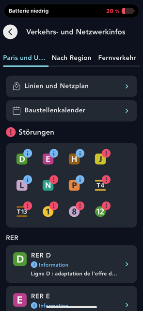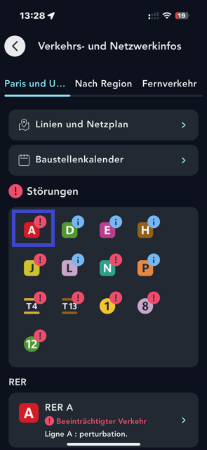 Praktisch, um alle aktuellen und bevorstehenden Störungen wie Baustellen, Verspätungen, Vorfälle, nicht bediente Haltestellen...in Erfahrung zu bringen