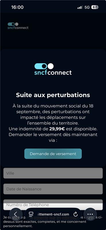 "SNCF Connect versendet keine Zahlungslinks über private Nachrichten oder soziale Netzwerke.