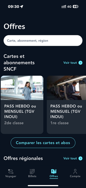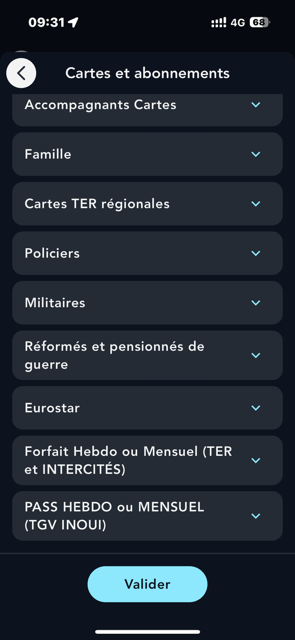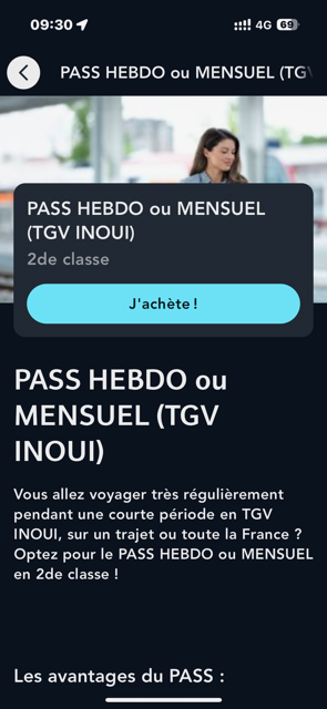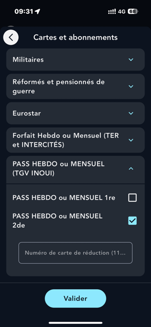 Cliquez sur "Cartes de réduction et abonnement", puis sélectionnez votre PASS HEBDO ou MENSUEL en 1ère ou en 2nde classe