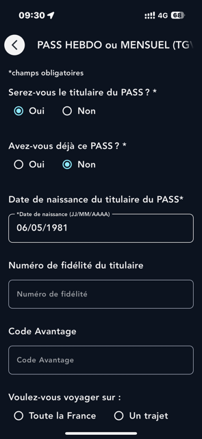 Remplissez le formulaire en indiquant également pour quel trajet vous souhaitez acheter le forfait